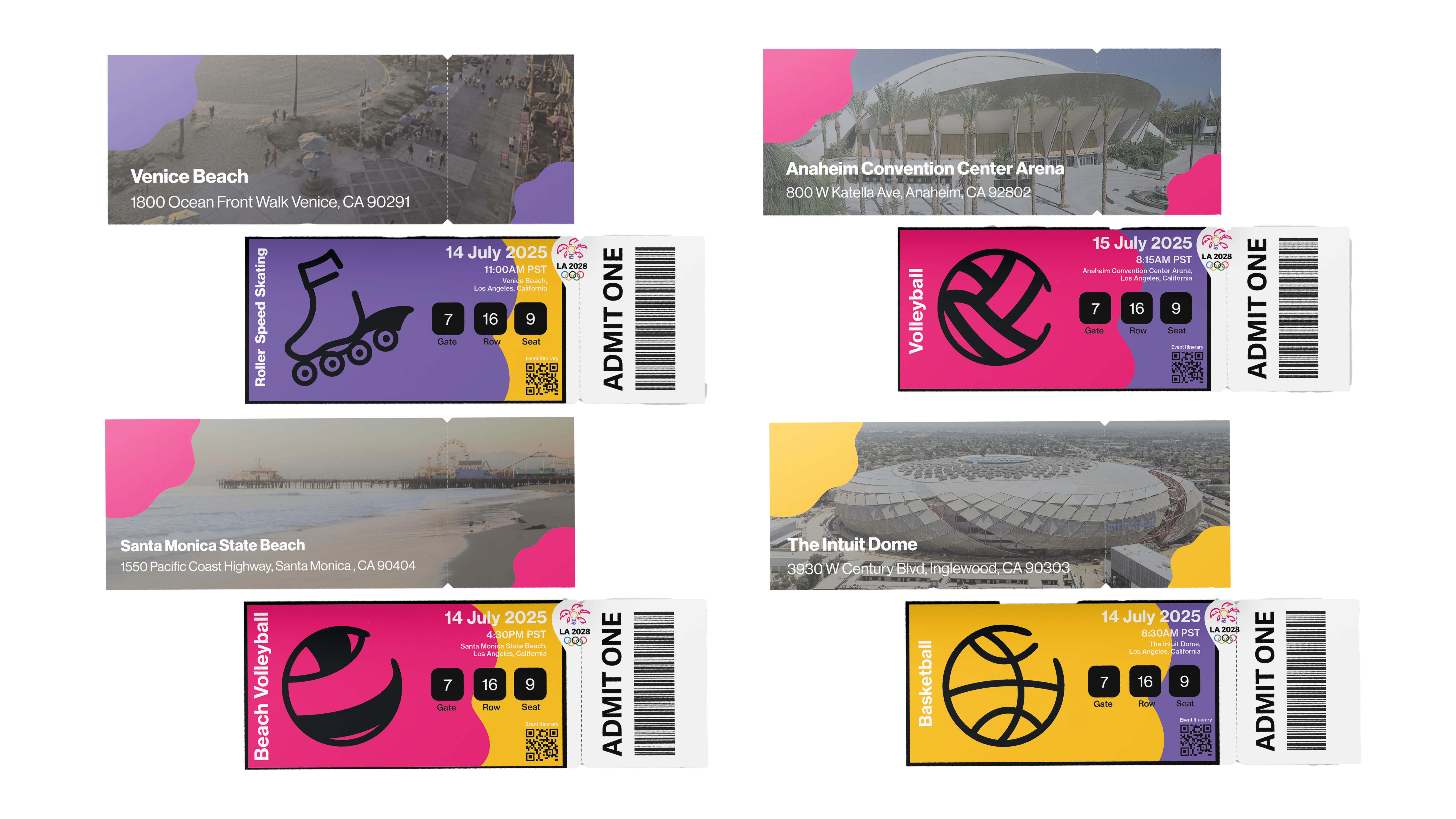 This is the branding concept for the 2028 LA Olympic Games. I designed all key visual elements for the Summer Olympics, drawing inspiration from LA's vibrant graffiti culture. This aesthetic is woven throughout the event's branding, creating a dynamic and authentic connection to the city's artistic identity.