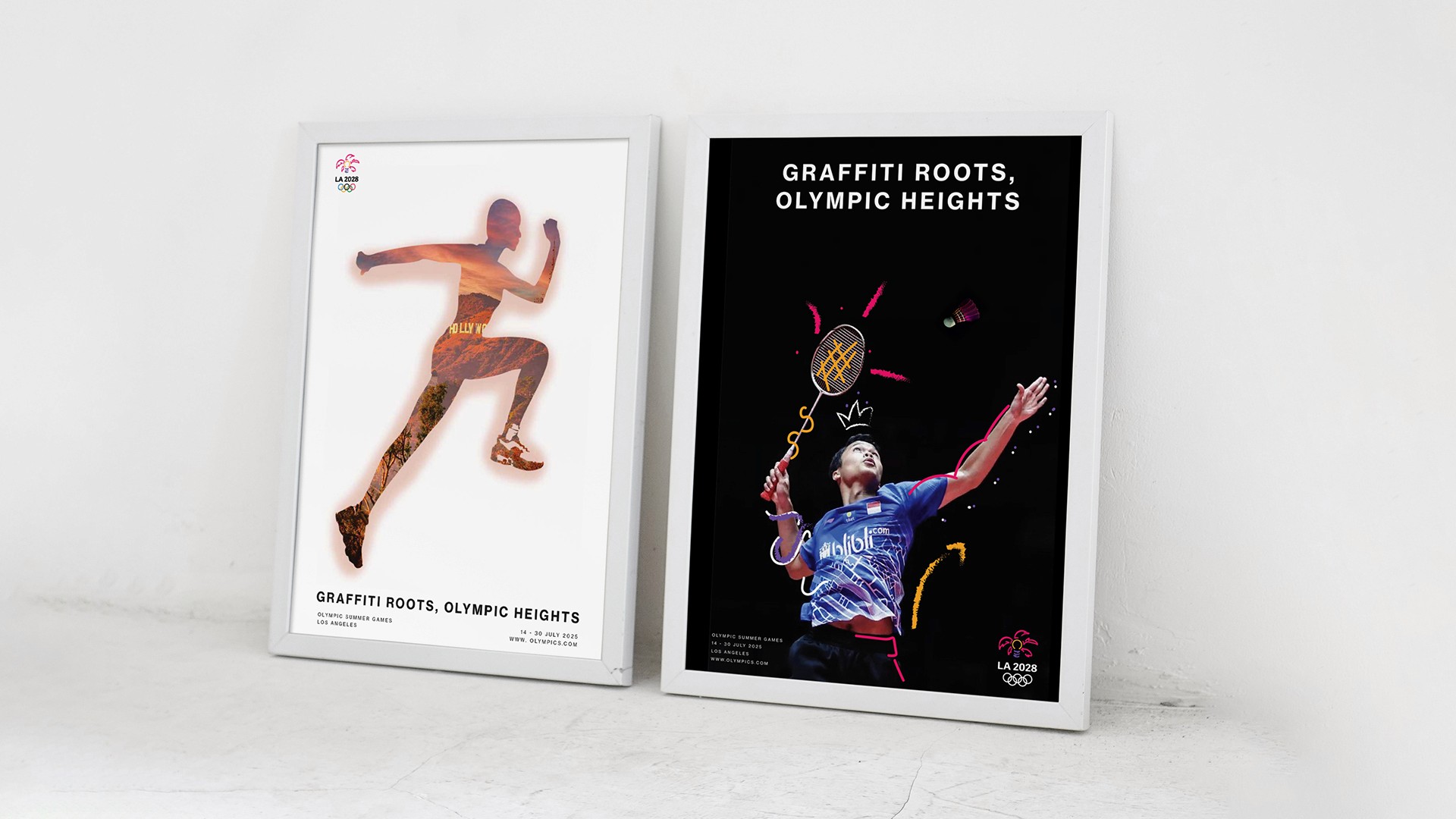 This concept celebrates Los Angeles as a vibrant, multicultural canvas where art, energy, and nature collide. Inspired by the city’s rich graffiti culture, the design language uses expressive forms, playful colors, and dynamic compositions that reflect both the creative pulse of the streets and the city’s iconic sunrises and sunsets into the olympic games