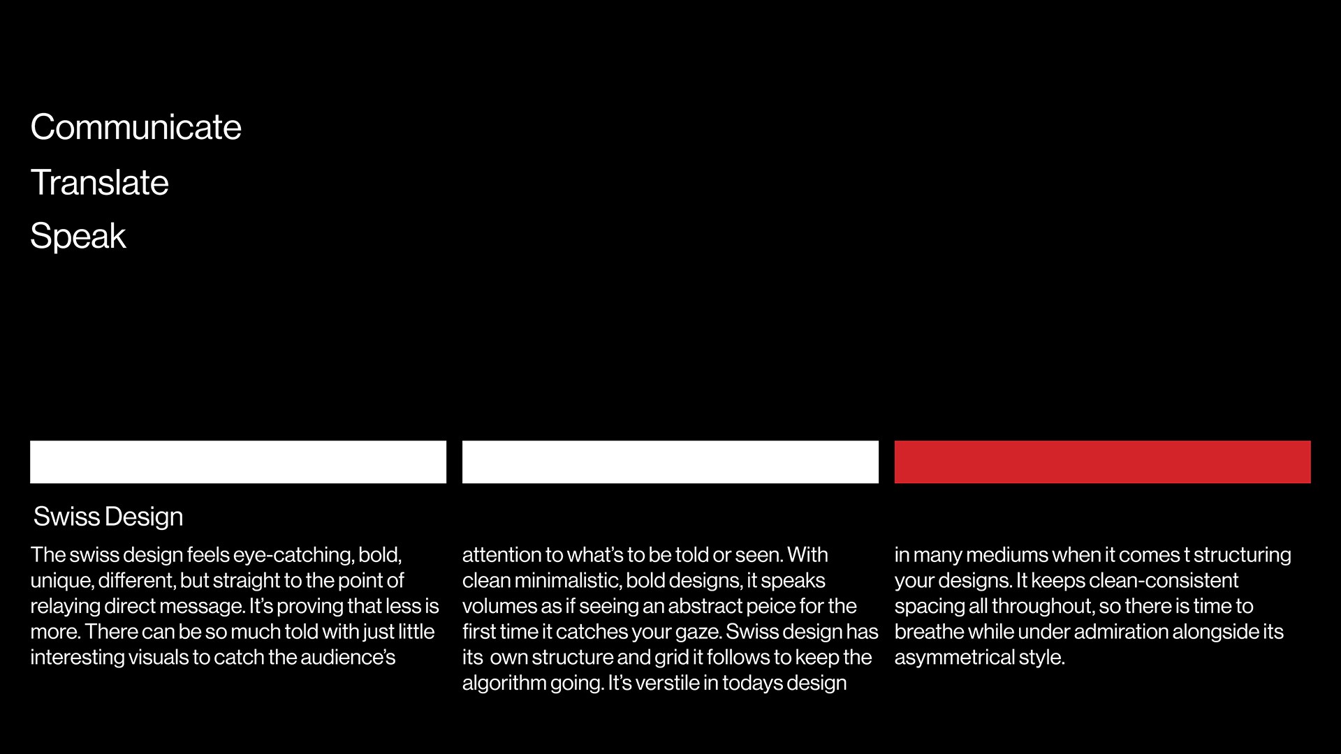 There was an expansive research about about how swiss design became a thing. What makes it an important movement and how it has such an impactful statement.