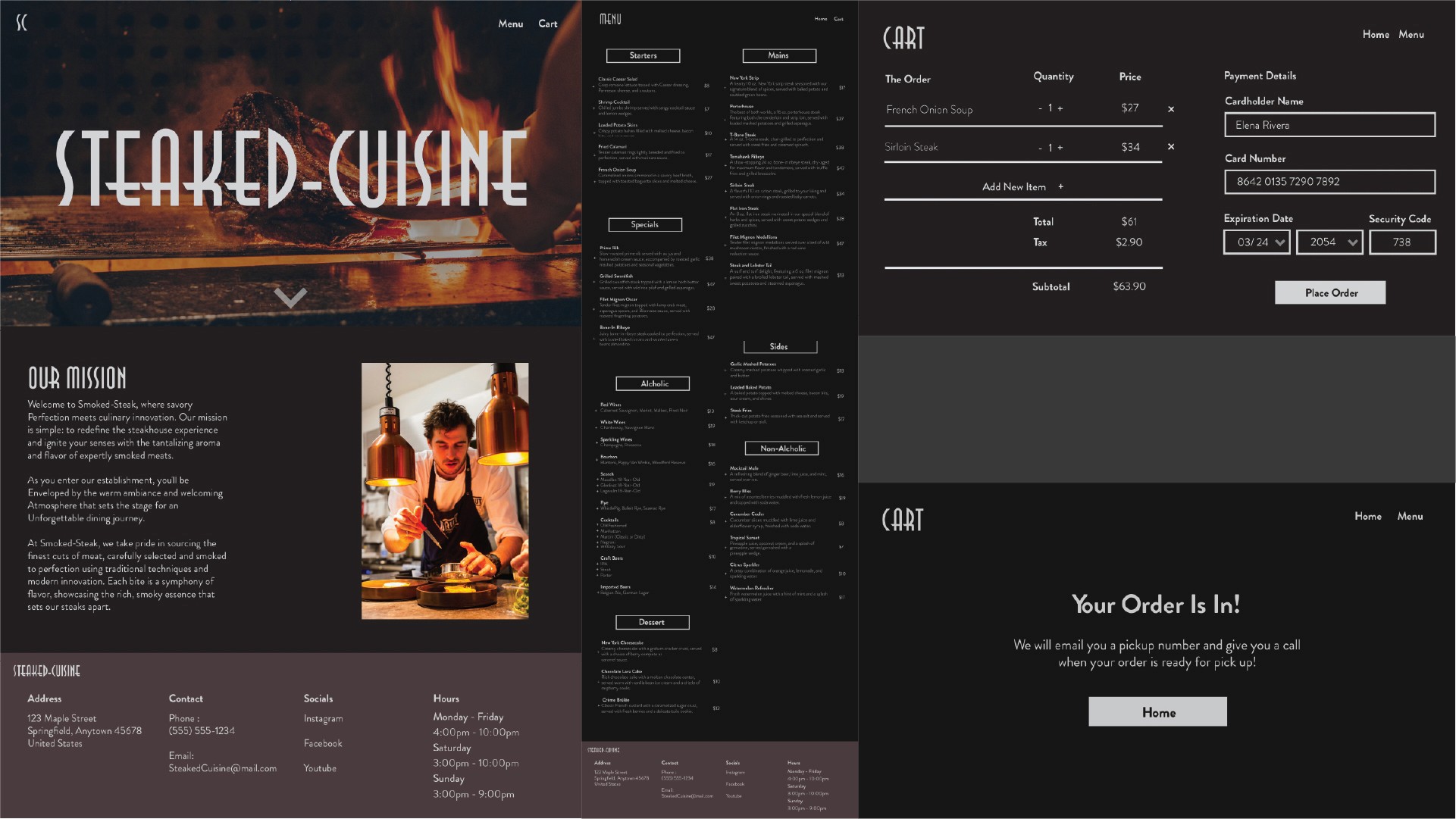 Step into a slick modern designed website dedicated to a high-end Restaurant. Where I wanted to give this establishment a well immersed experience for their consumers. I designed this to give consumers a feeling of the Restaurant before being there. Have them hooked into putting in a reservation for a place that has grabbed their attention.